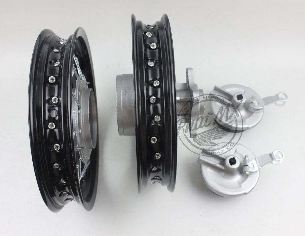 Aluminum 10" rim set with brake panels for the Honda XR50, and CRF50.