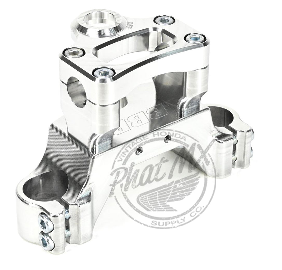 CNC machined from 6061 T-6 aluminum. Designed to accommodate adult riders. Raises bar mount position by 13mm. Fully adjustable front to back with 4 positions. Allows stock height or lowering of forks up to 1" to raise front end.