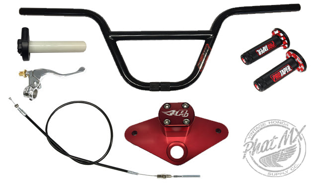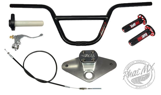 PhatMX BMX Bar Kit - includes Black BMX Bars, PMX Billet Aluminum Top Clamp, Brake Lever, Throttle Tube, Extended Brake Cable , Kill Switch and Pro Taper Grips.