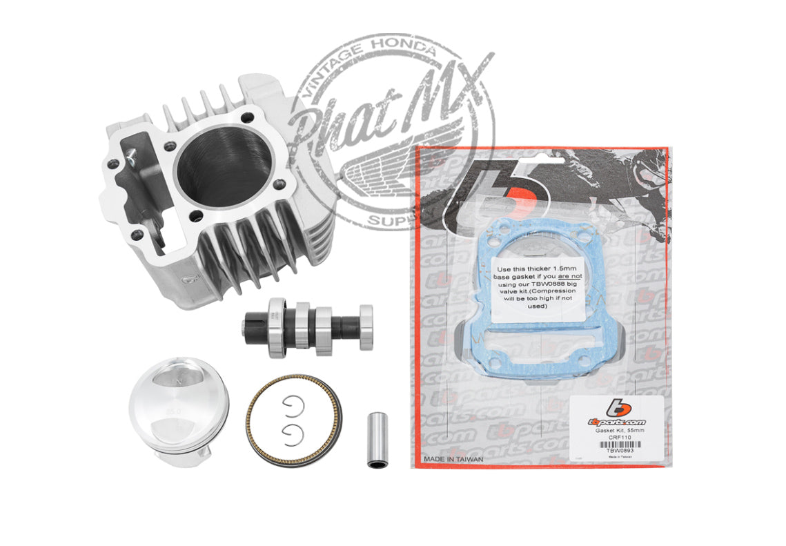 This CRF110 132cc big bore kit is a great performance upgrade for all year models of the popular Honda CRF110. With the larger bore, this bolt-on upgrade kit will give you more power and higher compression for a very reasonable price. This is an ideal option if you’re looking to add some power or you just need a new cylinder, piston, and rings to rebuild your engine. Now offered with our Mini MX camshaft so you can make even more power throughout the powerband!