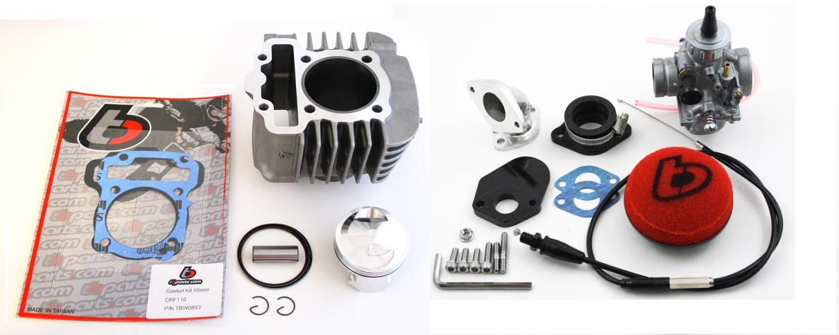 This kit is the TB 132cc big bore kit combined with our VM26 carb kit for an added boost! This bolt-on kit is a great performance upgrade for your 2013 thru 2018 CRF110 for a very reasonable price.