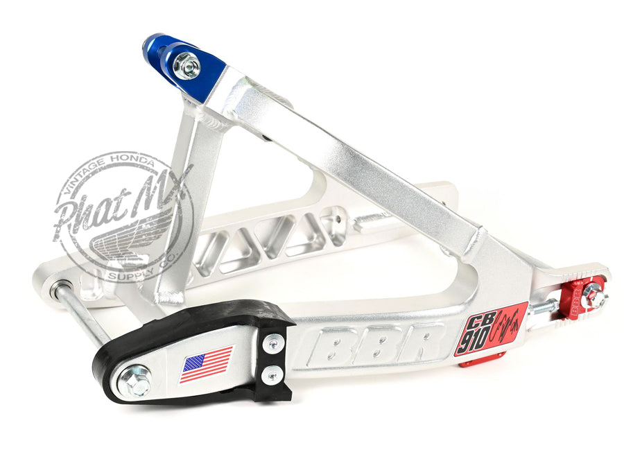 Introducing the all new BBR Stock Comp Signature aluminum swingarm for the CRF110F! We completely started over in designing this new A-frame style swingarm. The sides are forged from 6061 aluminum for super high strength and increased stiffness. These forgings eliminated the 4 main welds used on our old Super Stock swingarms and allowed for a much more precise fit and finish. The axle dropouts were redesigned to be stronger and allow for more chain adjustment. The shock mount is removable giving you the choice between standard ride height and +1" seat height. All Stock Comp Signature swingarms now include a brake stop that can be used for some disc brake caliper mounts or the standard CRF110F brake arm. Finish is bead blasted and clear anodized. Includes anodized look chrome signature decals from Ryan Villopoto and Carson Brown.