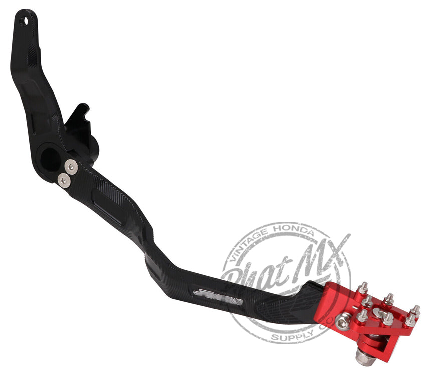 Ultra trick aluminum rear brake pedal for the CRF 110F. Has adjustable cnc tip to fit a variety of riders. The red anodized tip also fold out of the way in the event of a crash.