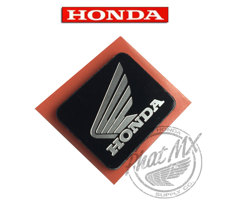 Genuine Honda metal wing logo. This small Flat logo is used on many Honda bikes including the XR50 & CRF50 located on the top clamp.