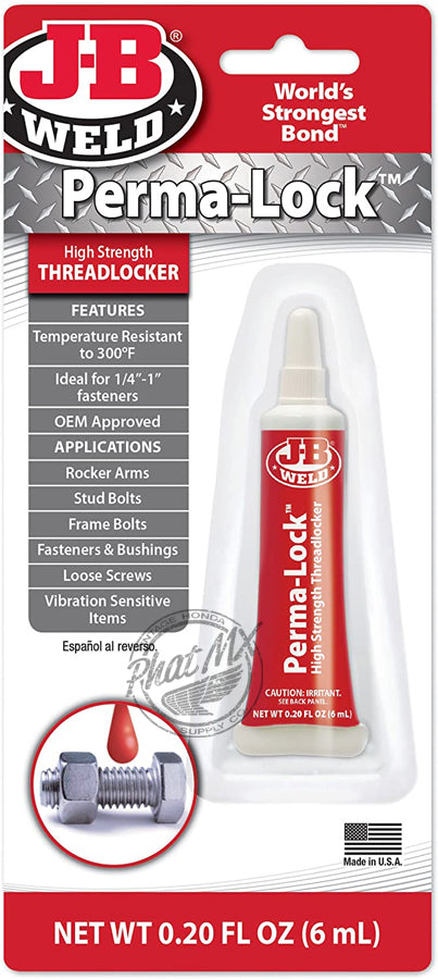 J-B Weld Threadlockers provide a reliable and superior lock and seal for threaded fasteners. Ideal on all mechanical parts, body assemblies, and hundreds of other applications to prevent loosening of fasteners from shock and vibration. J-B Weld Perma-lock High Strength Thread locker is ideal for heavy-duty applications requiring resistance to severe shock and vibrations.