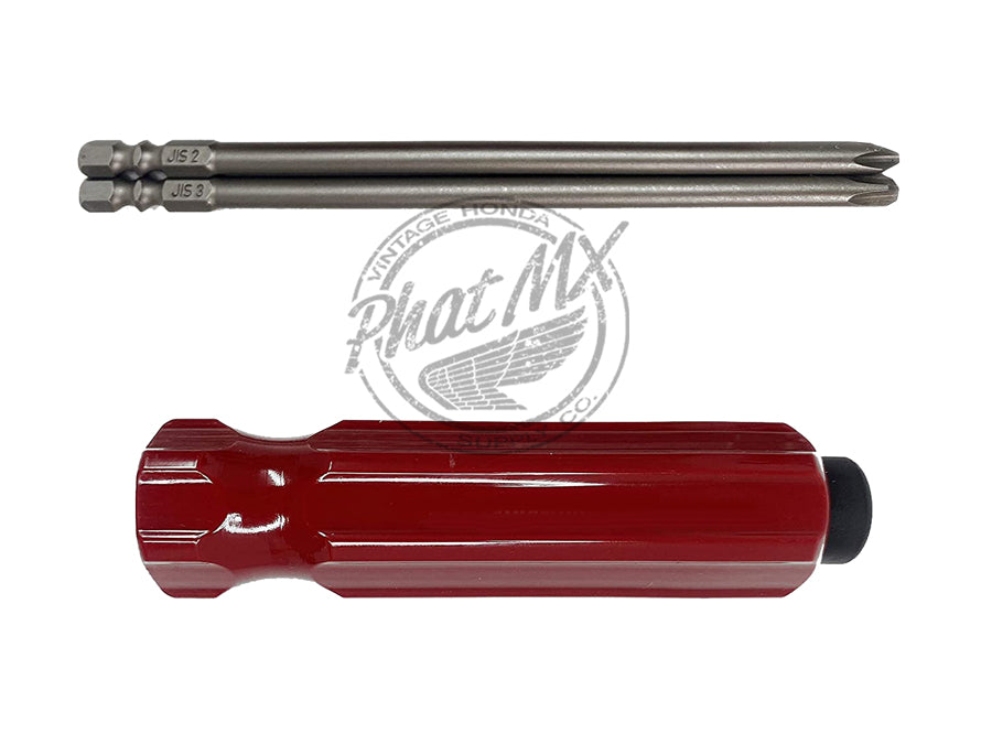 Comes with a #2 JIS/Phillips impact bit 150 mm in length and a #3 JIS/Phillips impact bit also 150 mm.