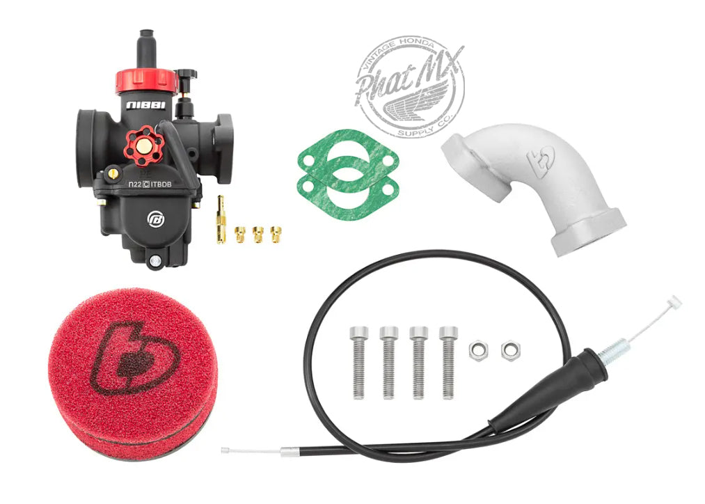 Nibbi PE22 – KLX110 – Stock Head. This is the best, if not one of the best carb kits to run on stock bore KLX110s. The nibbi FL22 is a fantastic option for stock bore KLX110s. High quality and more power! Does not reused the stock air box.