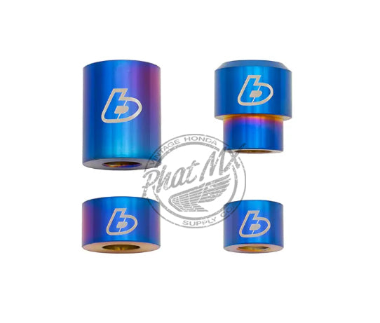 Upgrade your KLX110 with TBparts Titanium Wheel Bushings, crafted for superior strength, lightweight performance, and lasting style. These precision CNC-machined bushings feature a durable anodized finish and a sharp laser-etched TBparts logo for a clean, custom look.