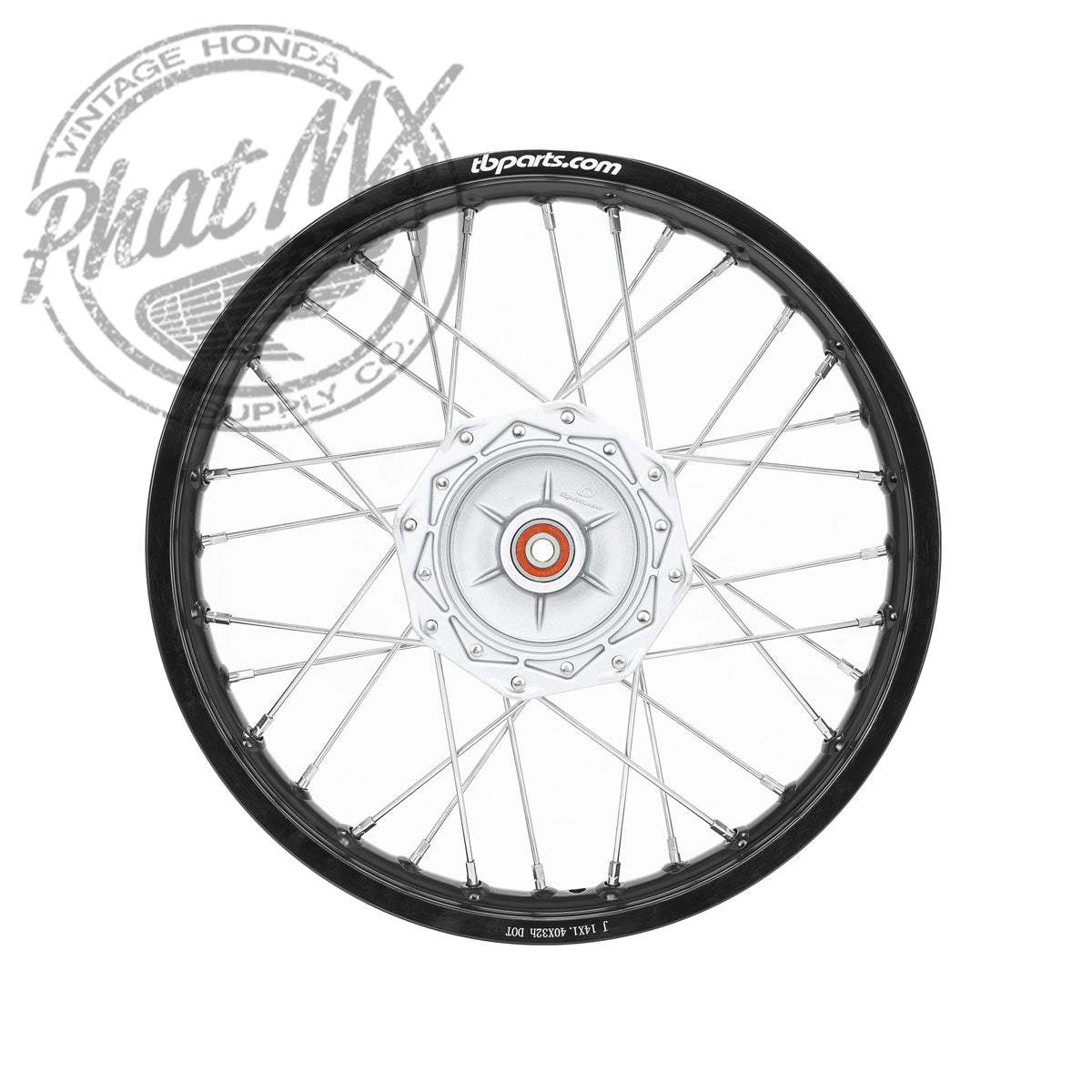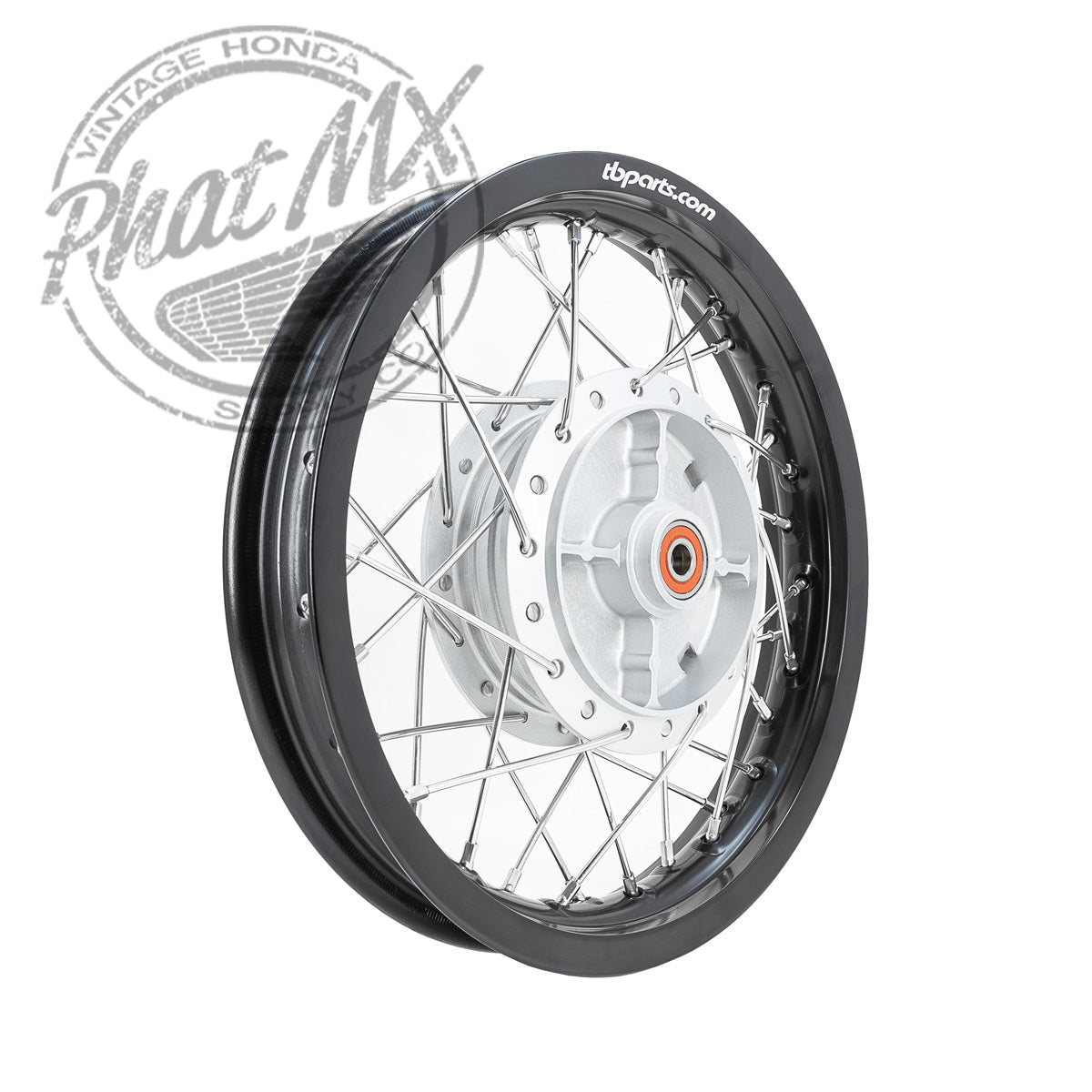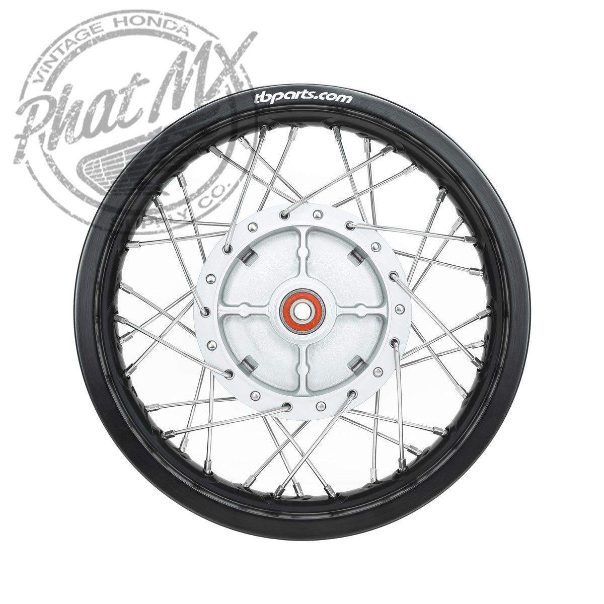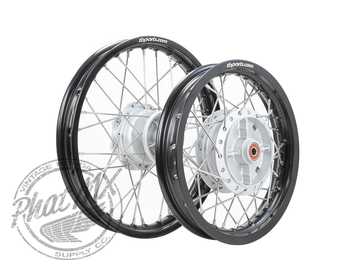 These wheels come ready to run from bearings to the rim. The factory install high quality NTN bearings with the proper spacer behind/between them. Next, is our OEM style “bolt in place” cast aluminum hub painted in silver to match the OEM brake panel. For added strength, we used stiffer/harder Stainless Steel spokes that are weather resistant compared to the basic steel OEM spokes. Wrapping up the complete wheels, are the aircraft grade 7050 aluminum rims in satin black with the TBparts logo. These are lighter, stronger, and more weather resistant than the factory steel rims. Not to mention, these come laced saving you a ton of time and hassle!