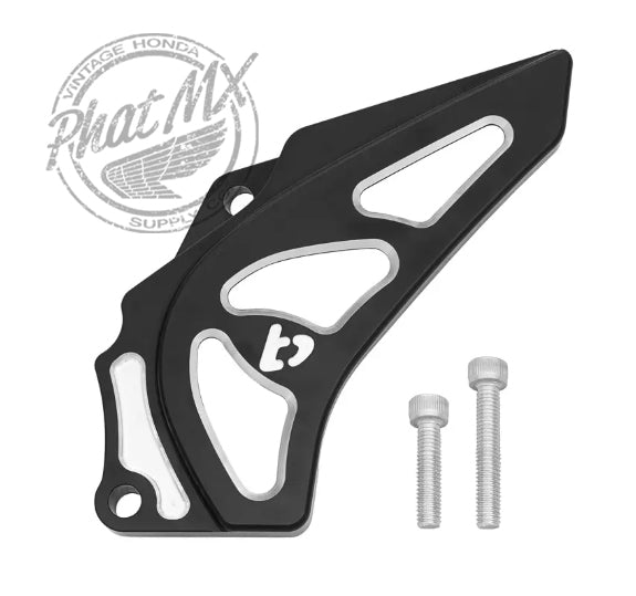 CNC billet sprocket guard anodized green for Kawasaki KLX140s. CNC finished out of billet aluminum, anodized green, and engraved TB logo. Machined windows keep weight down and make cleaning easier. Perfect fit, HD, high quality, and looks 10/10.