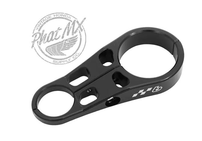 TBparts upper front billet brake hose holder for KLX140s. Billet aluminum and hard anodized. Clamp onto the front fork to replace the OEM clamp.