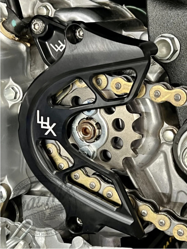 Lux Billet Front Sprocket Guard was designed to fit a 16T Front sprocket and still protect your engine case!
