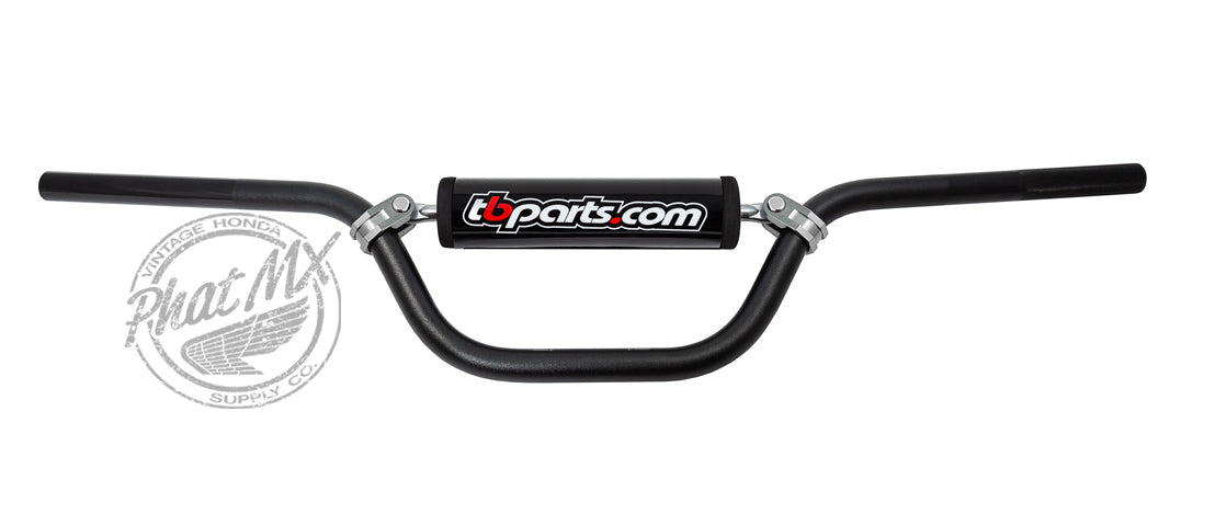 TBparts 7/8″ Mid Rise Handlebars Anodized Black. This style bend is normally preferred by racers on 110 sized bikes like the Kawasaki KLX110s, Honda CRF110, and Yamaha TTR110. They also work great as tall bars on KLX140s, CRF125s, CRF/XR100s and other models too! They feature a 4.5″ rise, 1.95″ sweep, and are 31.75″ in length. These are the same proven quality of our CRF50/XR50 bend bars just shorter for different applications.