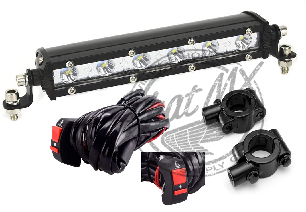 Includes: LED light bar, Harness with switch, handle bar mounts and hardware.