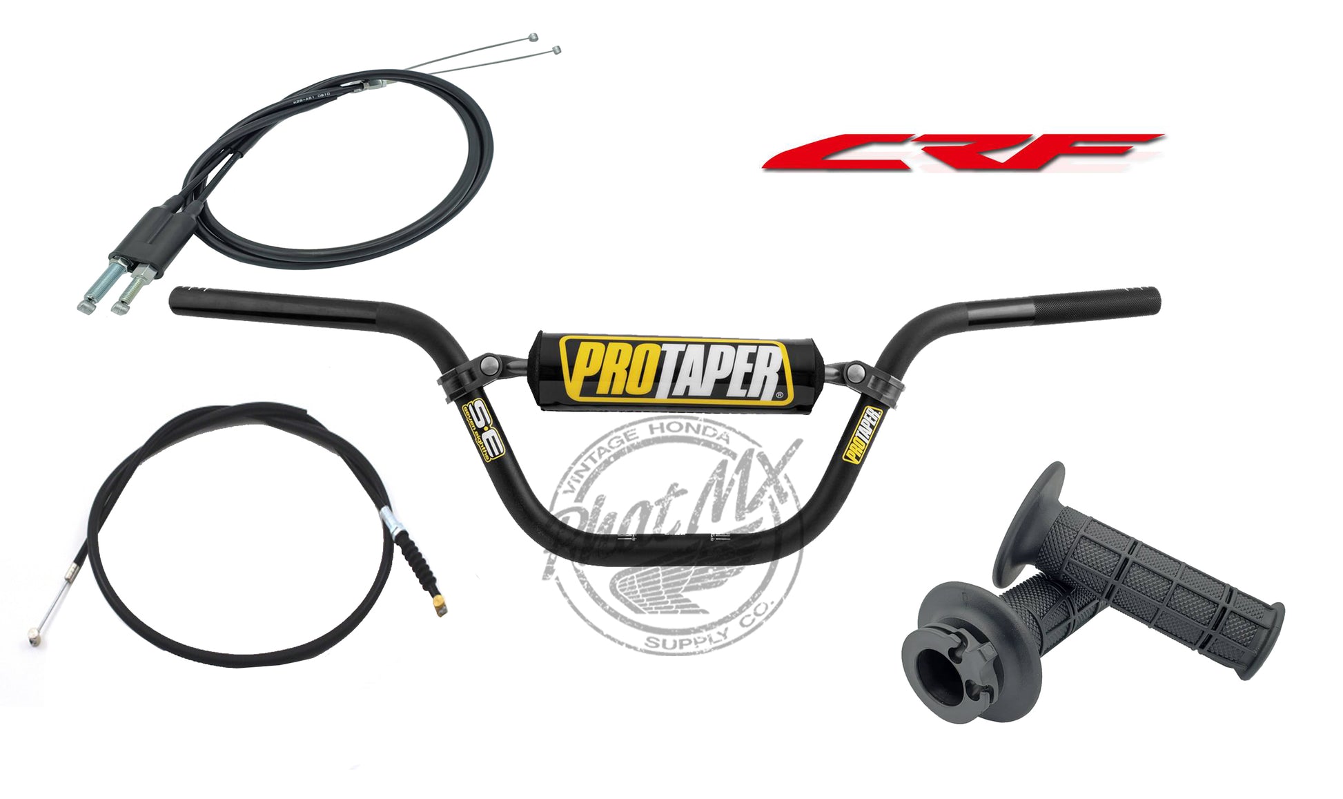 Includes: Genuine Pro Taper black bar, Full size throttle tube (black or white) , Grips, Longer dual throttle cable, and extended front brake cable.
