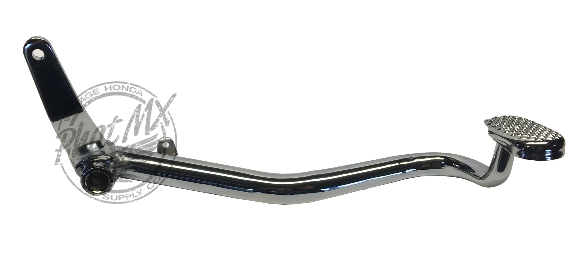 Reproduction foot Brake Arm / brake pedal. Fits Honda Z50 1972-78 but will also work on the 79+ Z50's. Same smooth chrome finish as your original brake pedal but at a fraction of the price.
