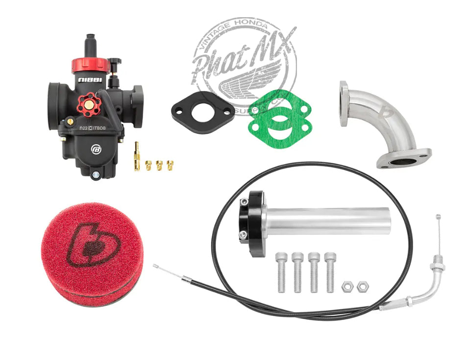 22mm Nibbi carb and billet 1/4 turn throttle kit. Take your mini bike’s performance to the next level, an excellent upgrade over the stock OEM carb setup.