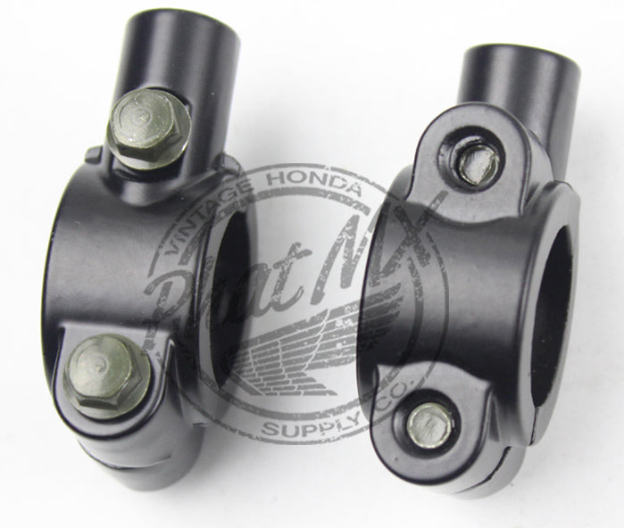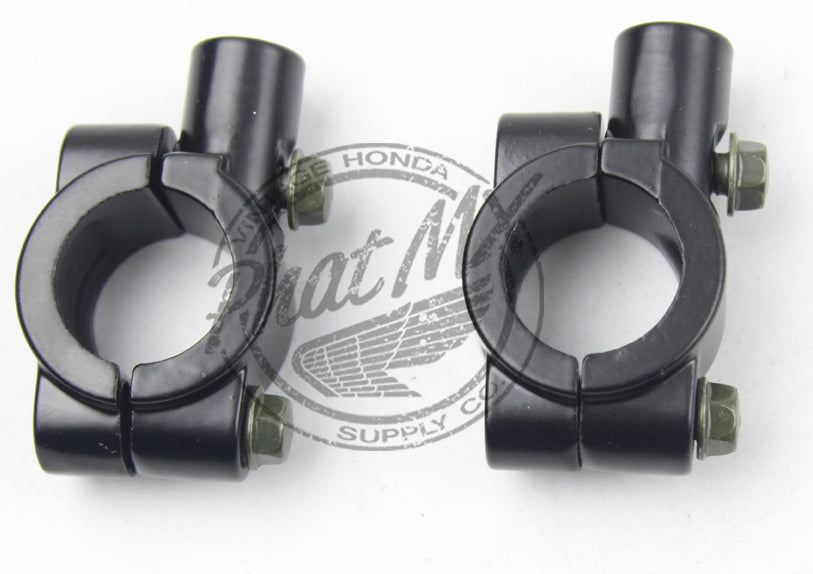 These mounts are sold as a set and have a M10 x 1.25 threaded hole for the mirror. Perfect for adding mirrors to a bike that doesn't have factory perches or if you've changed the bars. Works with any standard 7/8" bar. Finished in a black powder coat.