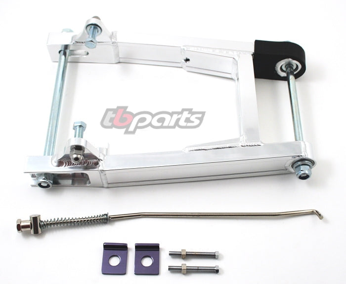 This kit includes a high quality, light weight all aluminum + 1.5" swingarm that increases strength and improves handling. Includes everything shown including real bearings (not rubber bushings). Recommend for use with our HD 280mm rear shocks also available in this section. This is not a cheap china swingarm - compare the quality and you will see the difference.