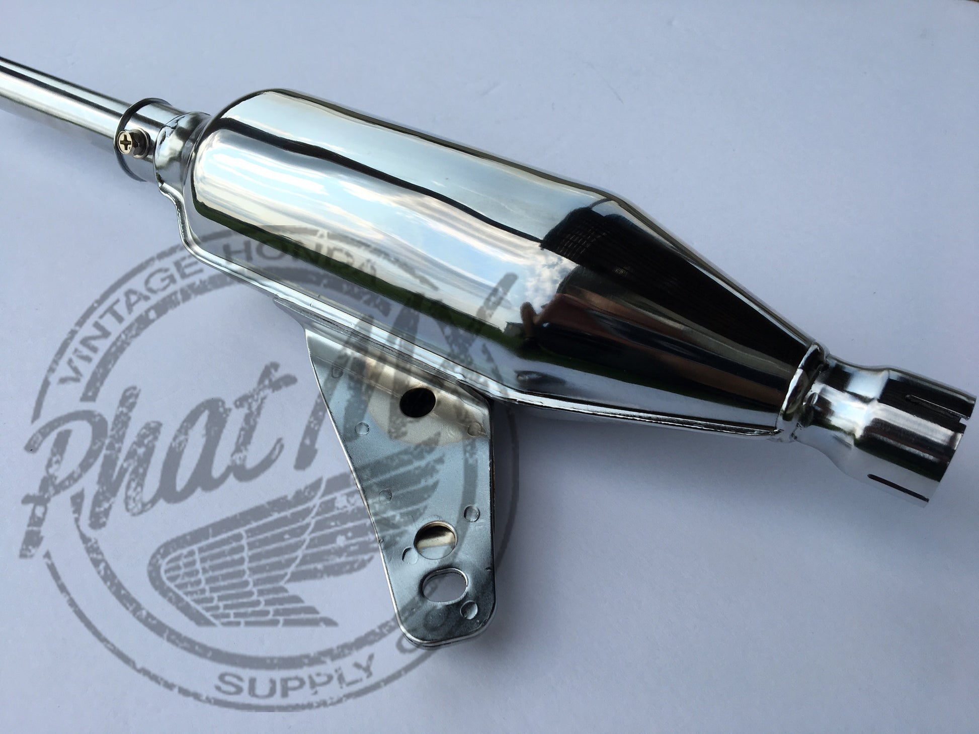 This is the best reproduction muffler for the Honda Z50 1968-1971 we could find. Its triple plated chrome and is a perfect replica of the OEM muffler (with the exception of the writing). The quality of manufacturing and attention to detail is second to none. Includes tail pipe.
