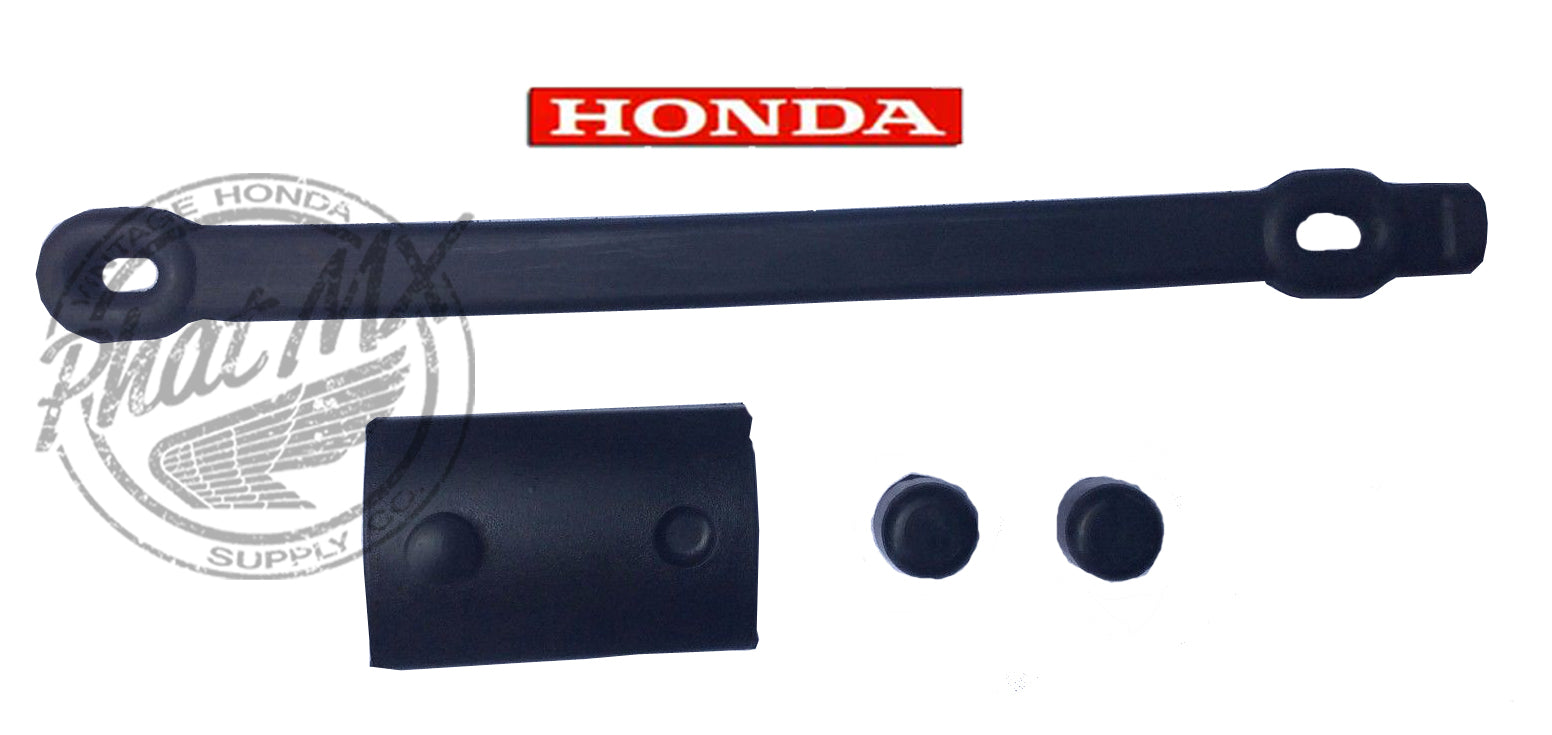 Kit Includes 2 rubbers for the front, tank pad for the rear and tank strap - all OEM Honda parts.