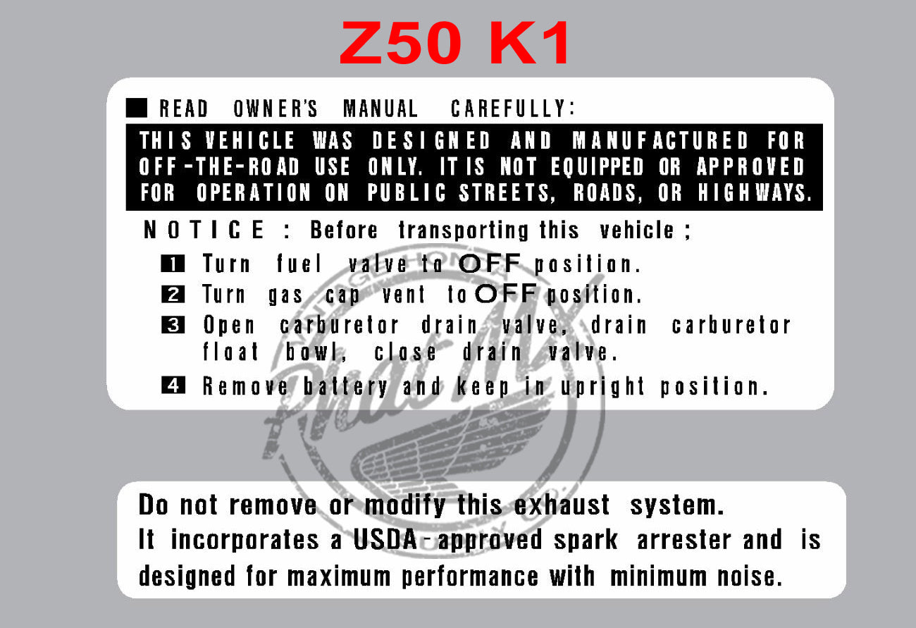 Reproduction decals for the Honda Z50 K1 (1969-1970) hardtail.