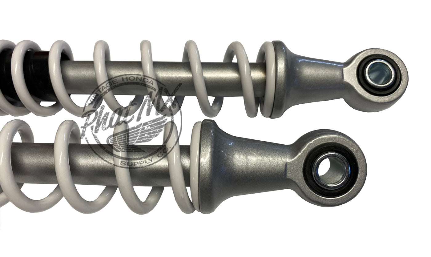 This is a quality reproduction rear shock set that will work on all Z50 and Z50R models from 1972 and up (K3-99). Often, shocks on the old Z50s are in poor condition with rust, pitting, and/or deteriorated paint and restoring them (if possible) can be a timely process. Additionally, Honda discontinued these shocks so finding a NOS set can be difficult and they will be quite expensive, if found. We had these shocks made to specifically solve those issues and provide an affordable way of freshening up the appearance and ride on your Z50. This set has the following features: