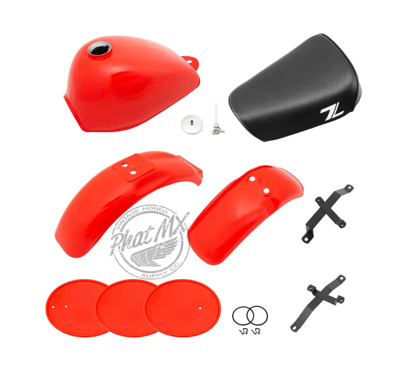 TBparts Fender Set, Red, Z50R 79-87 Models – We have updated them and now they are soft flexible plastic (not painted) just like the originals which have been discontinued from Honda. They are OEM quality and color is now Tahitian red which is also very similar to Blaze red (both colors used on Z50Rs).